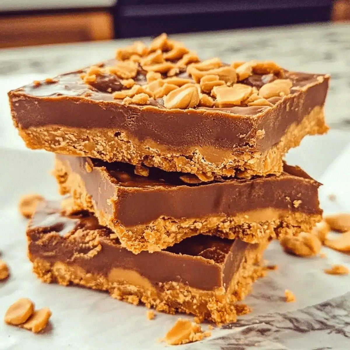 Store the bars in an airtight container in the refrigerator for up to a week. The bars will remain firm and fresh, with the chocolate retaining its glossy sheen. Keep them away from strong odors, as peanut butter can absorb flavors. When you’re ready to eat, let them sit at room temperature for a few minutes to soften slightly. This will enhance the melt‑in‑your‑mouth experience.