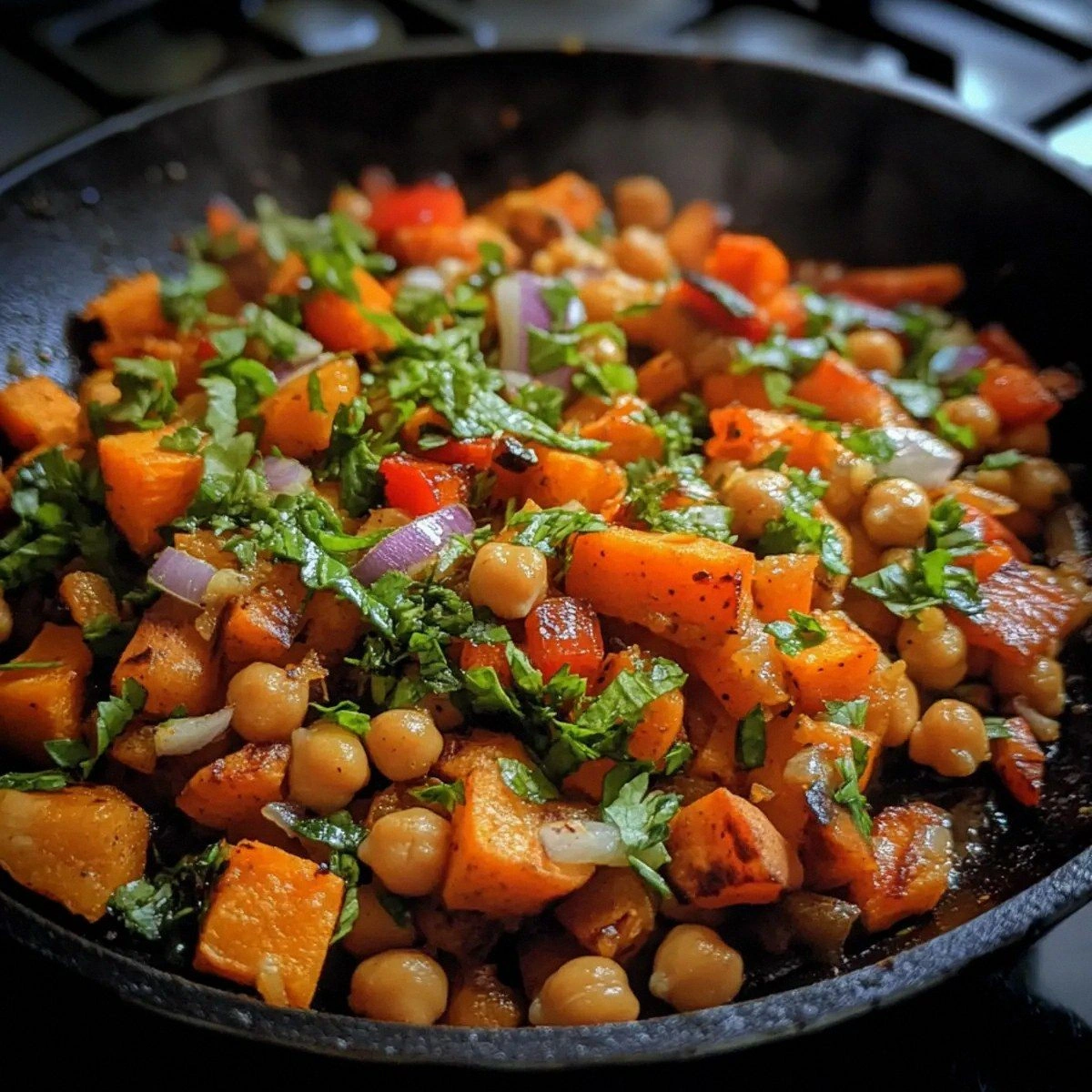 Many cooks keep the heat too low when sautéing, which leads to soggy chickpeas. I’ve learned that a medium‑high heat is essential for a crisp exterior. Keep the skillet hot enough that the sweet potatoes begin to blister slightly, but not so hot that the onions burn. This simple adjustment ensures a perfect caramelization and a delightful crunch.