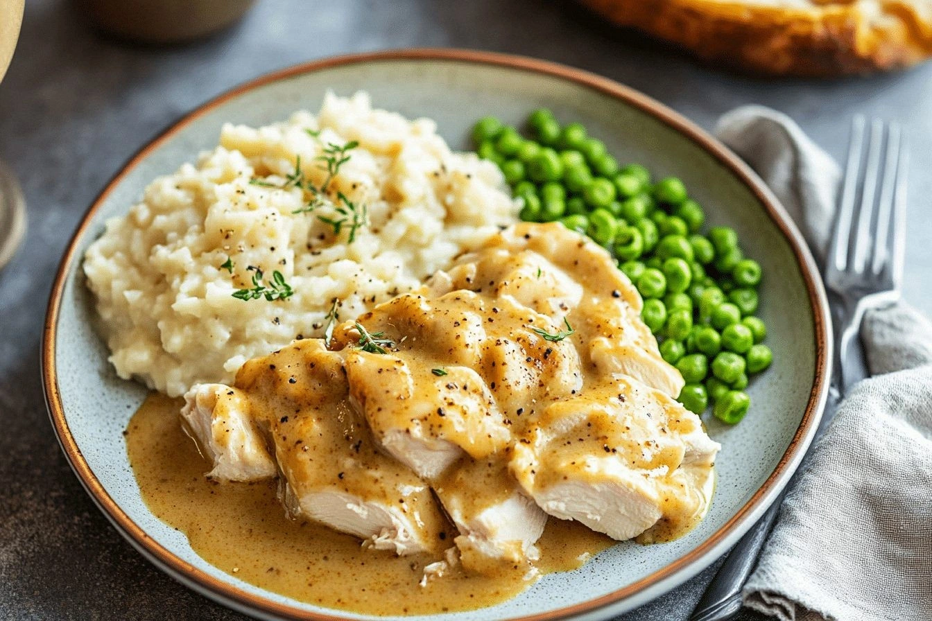 Milk or cream is added to finish the gravy, giving it a creamy, silky mouthfeel that melts into the chicken. A splash of heavy cream will make the sauce more luxurious, while milk keeps it lighter. If you’re lactose intolerant, use a dairy‑free milk or a blend of water and a tablespoon of flour to mimic the thickness. Fresh herbs such as thyme or parsley brighten the dish with bright, herbal notes that cut through the richness.