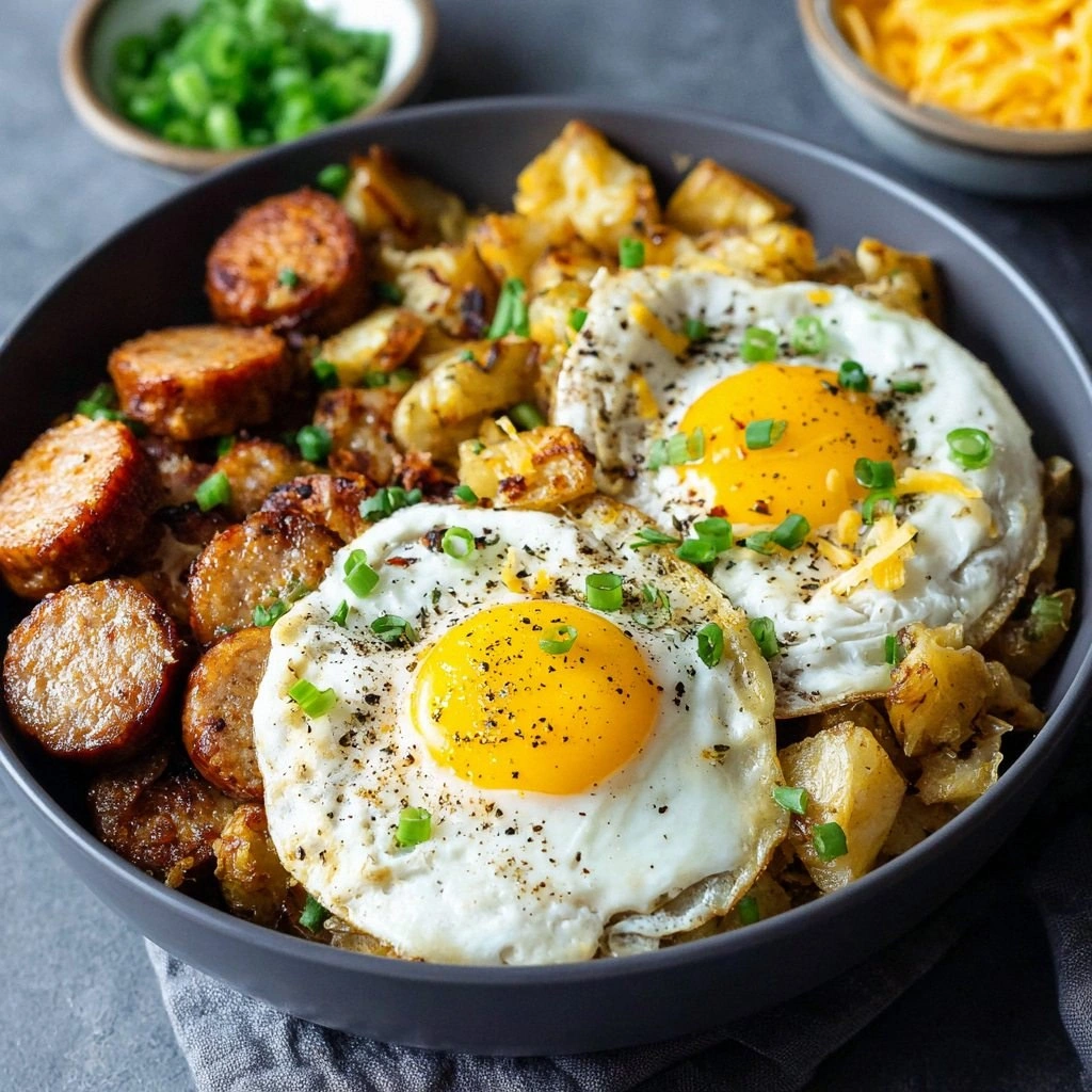 The eggs are the secret sauce that binds everything together. A runny yolk coats the quinoa and sausage, creating a velvety texture. If you prefer a firmer yolk, cook the eggs to a soft‑boiled consistency. The shredded cheddar melts into a creamy layer that adds richness; if you’re lactose intolerant, a sprinkle of nutritional yeast can give a cheesy flavor without the dairy.