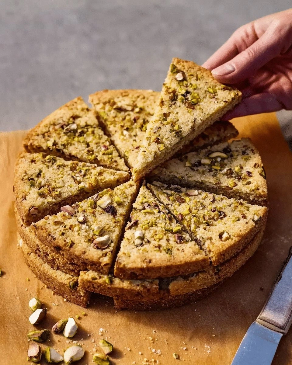 Replace pistachios with toasted almonds for a different nutty note. The almond’s subtle sweetness complements the buttery base, making it a great accompaniment to afternoon tea.