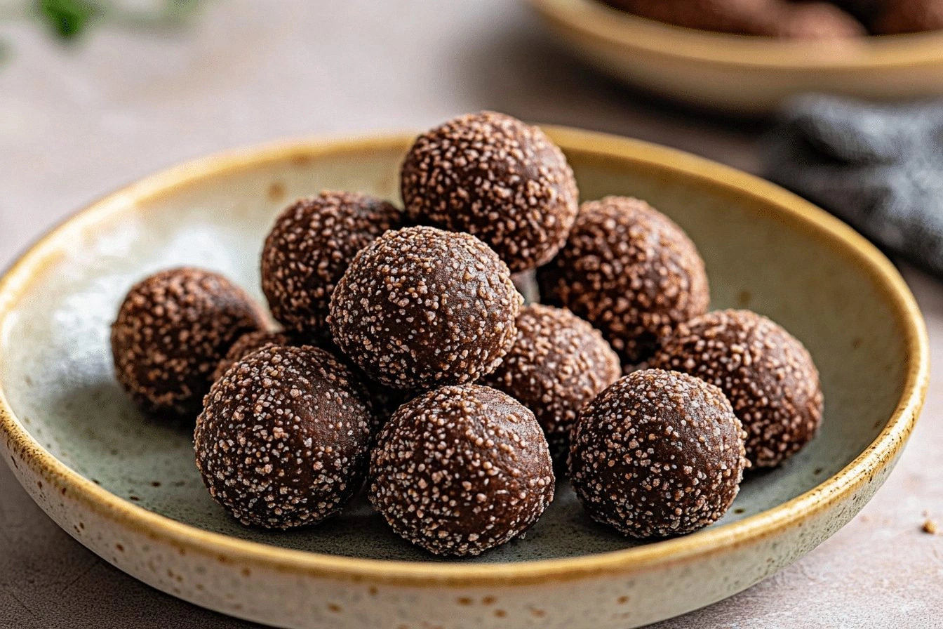 "Indulge in bite‑size chocolate bliss with these wholesome energy balls. Sweetened by medjool dates, they melt into a silky, cacao‑rich coating while almonds, coconut, and chia seeds add crunch, chew, and a nutrient boost. A dash of vanilla and sea salt elevates the flavor, making every bite feel like a guilt‑free dessert treat that packs protein, fiber, and healthy fats."